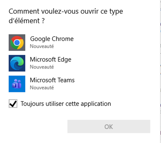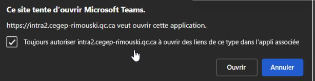 De plus, il se peut que cette fenêtre s'ouvre si votre Teams n'est pas ouvert :