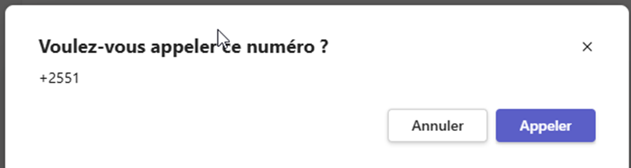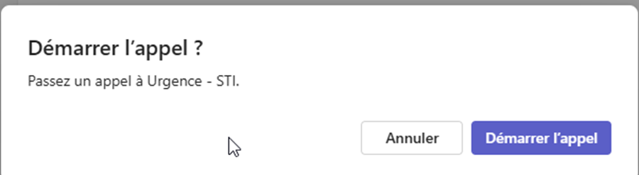 En cliquant sur le bouton Appeler, une fenêtre va ouvrir avec le numéro du poste : cliquer sur Appeler ou si c'est un numéro de téléphone comme la deuxième exemple vous aller cliquer sur Démarrer l'appel.